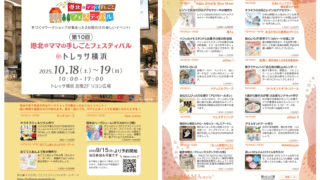 日時:2025年10月18日(土)~19(日)場所:トレッサ横浜北棟リヨン広場(横浜市港北区)動員:485人(ワークショップ実参加者数) 『港北ママの手しごとフェスティバル』@トレッサ横浜無事に終了しました!2日間で48 … 続きを読む 港北*ママの手しごとフェスティバル2025 開催報告